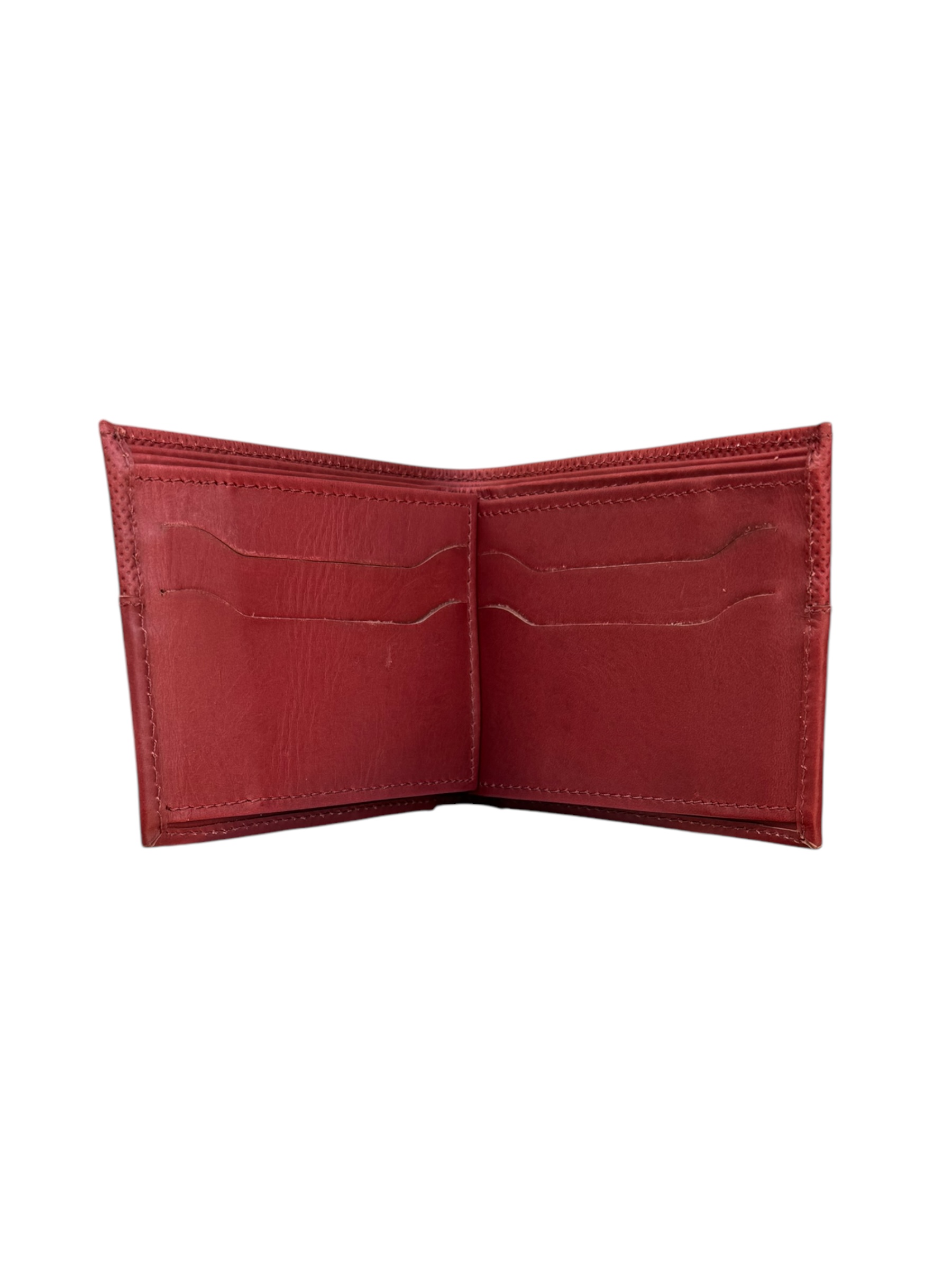 Billetera elaborada en cuero, múltiples compartimientos. Medidas aproximadas 11,5 cm de ancho y 9 cm de alto.