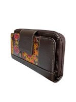 Billetera larga repujada en cuero. Medidas aproximadas 19cm de ancho, 10cm de alto y 3cm de longitud.