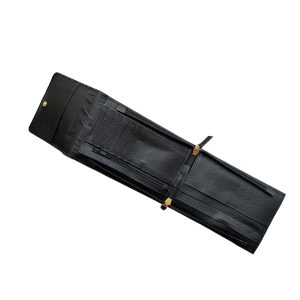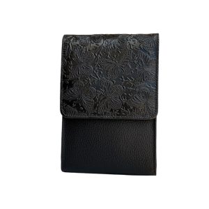 Billetera tipo tarjetero mediana, elaborada en cuero, contiene 8 compartimientos para tarjetas, espacio para billetes y monedero.