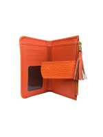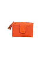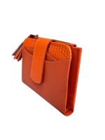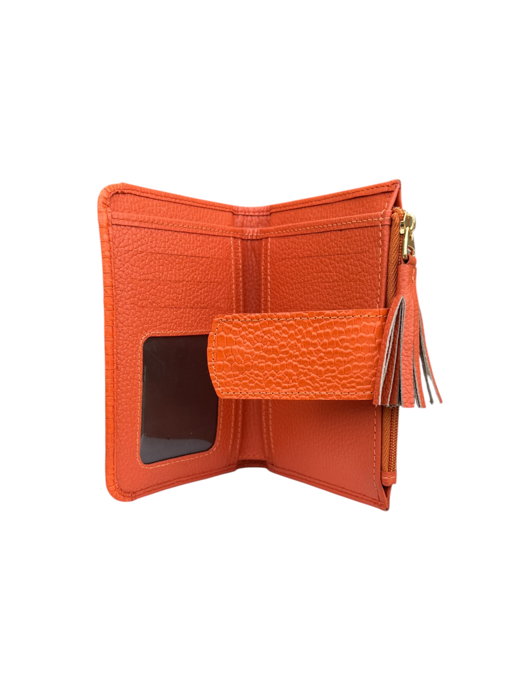 Billetera tipo tarjetero elaborada en cuero. Medidas aproximadas 14 cm de ancho y 11 cm de alto.