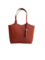 Bolso elaborado en cuero. Medidas aproximadas 42cm de ancho y 28cm de alto.