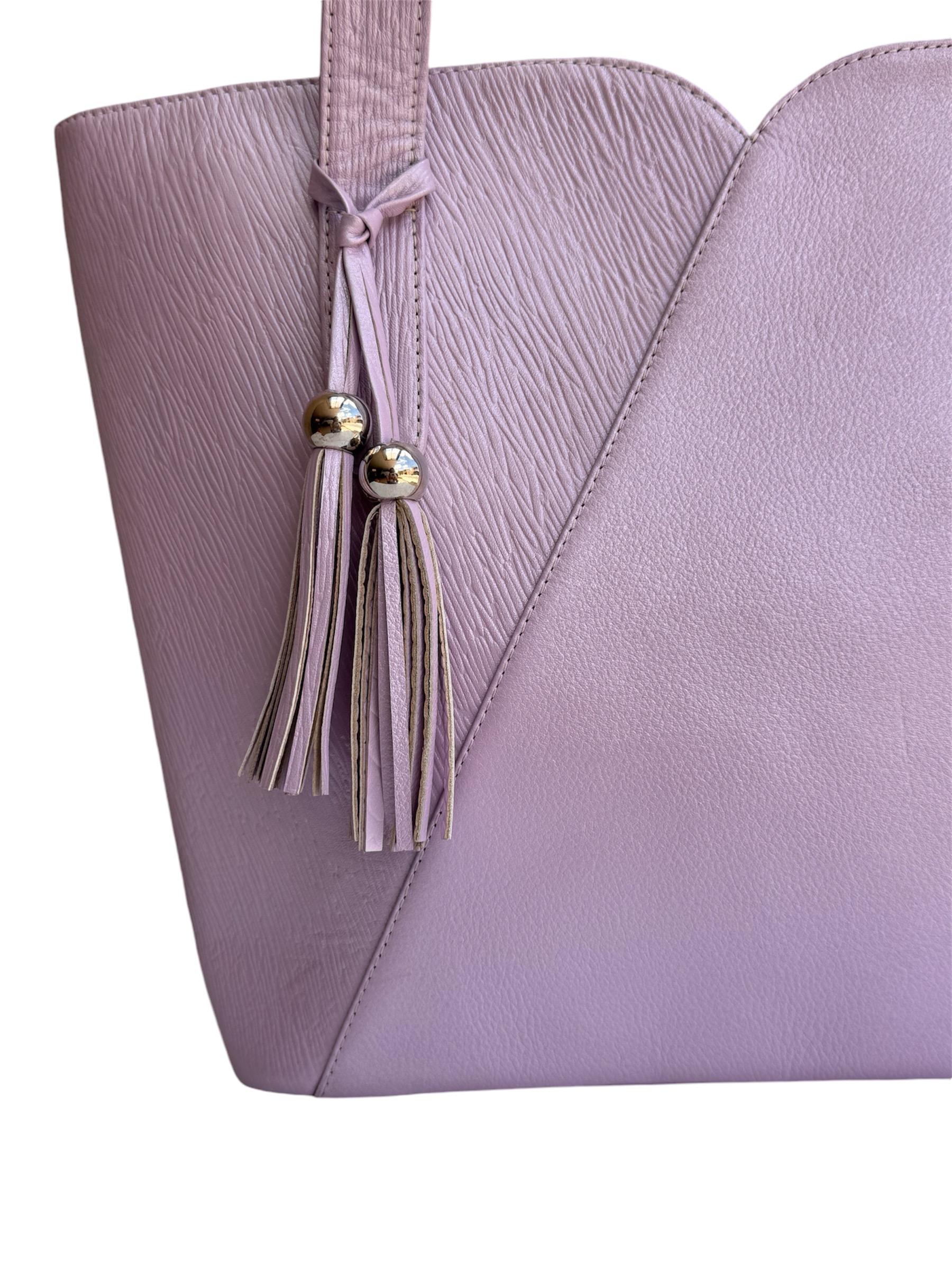 Bolso de mano elaborado en cuero. Medidas aproximadas 43cm de ancho y 29cm de alto.