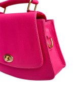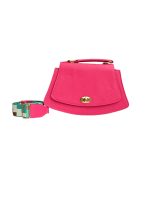 Bolso en cuero con reata tejida, broche de seguridad, herrajes en zamac. Un sólo compartimiento.
