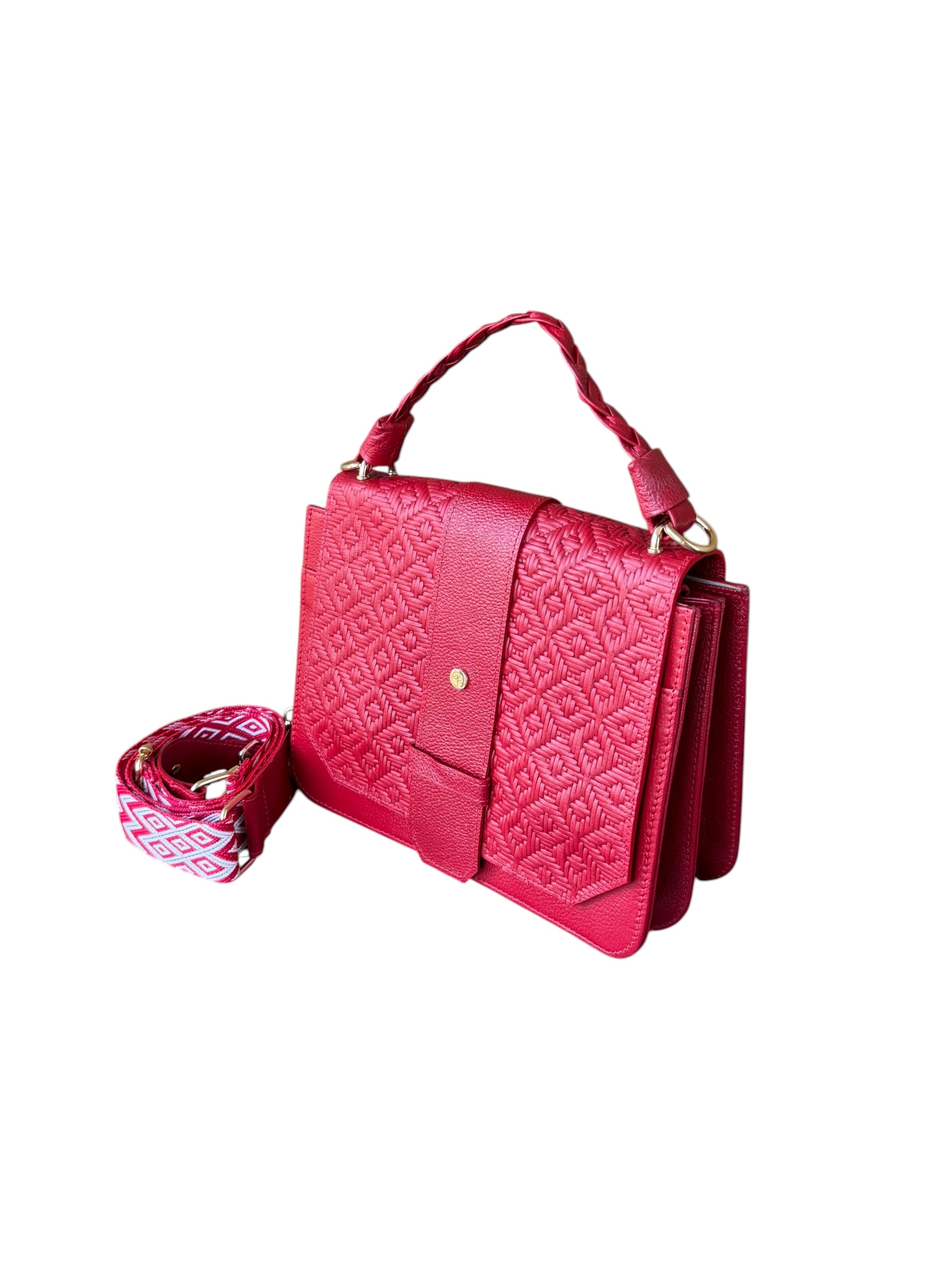 Bolso renacer elaborado en cuero, incluye reata tejida para usar como manos libres, cuenta con tres divisiones internas para que puedas llevar tus objetos personales de una manera más organizada. Uno de los compartimientos cuenta con cremallera, adicional cuenta con dos bolsillos internos.