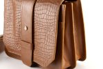 Bolso elaborado en cuero. Medidas aproximadas 18 cm de alto, 25cm de ancho y 9,5 cm de profundidad.
