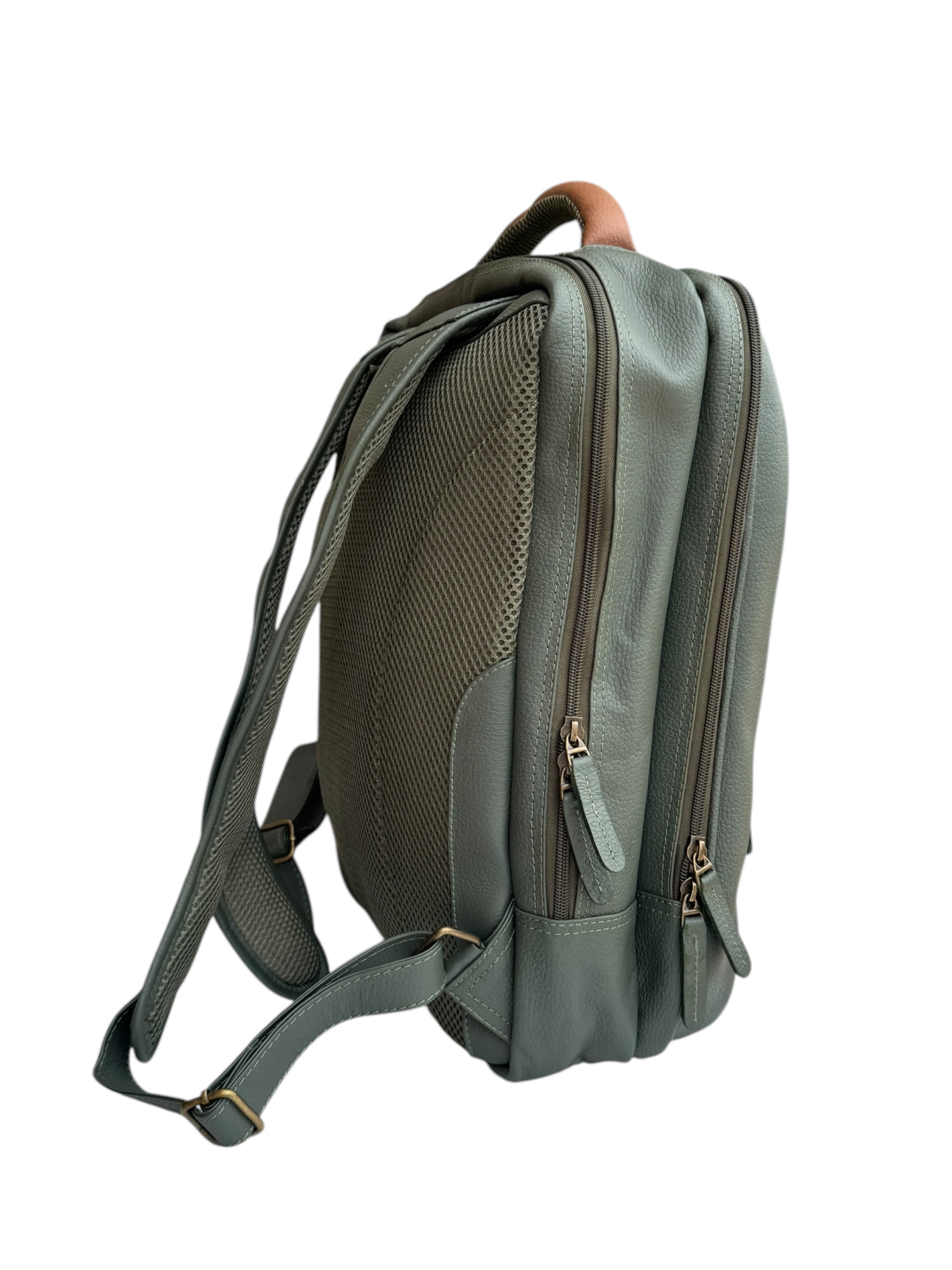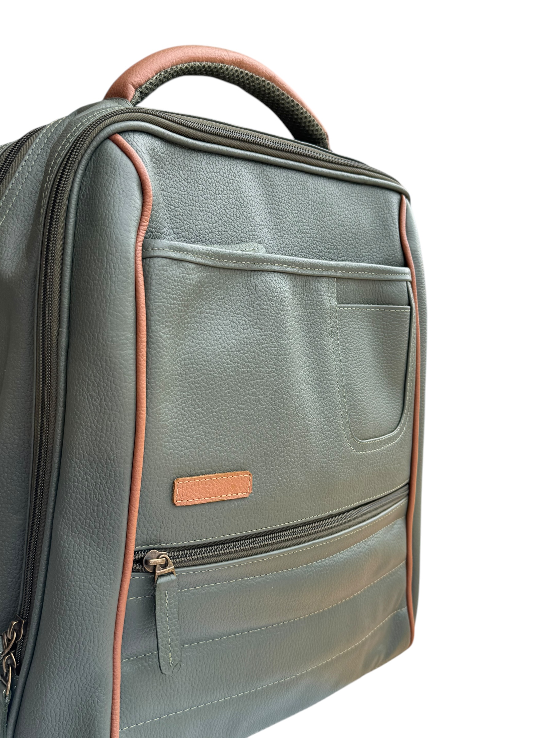 Morral elaborado en cuero. Multifuncional, contiene dos bolsillos frontales con cremallera. Doble cierre, en el primer compartimiento contiene 4 bolsillos internos, uno de ellos con cierre. En el segundo, un espacio multifuncional con un espacio exclusivo para portátil.